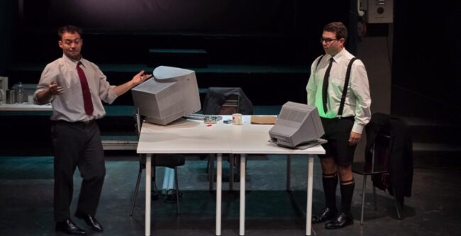 Οι ερμηνείες είναι απόλυτα εναρμονισμένες με το υλικό. Ο Νίκος Μαρνάς, ως νεοεισερχόμενος υπάλληλος, μεταφέρει με ακρίβεια το βάρος της σταδιακής του διάβρωσης – από αθώος παρατηρητής σε διστακτικό συνένοχο. Ο Γιώργος Γκιόκας, με την έξοχη κίνηση του, ενσαρκώνει τον διευθυντή με μια σχεδόν παιγνιώδη ωμότητα· ένας χαρακτήρας που χτίζει την εξουσία του μέσα από την ευκολία με την οποία αποδομεί την ηθική, είναι απειλητικός στην αυθάδεια της εξουσίας του· ένας χαρακτήρας που απολαμβάνει τη σύγχυση, χειρίζεται τον φόβο με κυνισμό, κι όμως δεν παύει να θυμίζει πρόσωπα που έχουμε συναντήσει. Ο Νίκος Στεργιώτης, ως παλαιός υπάλληλος, αποδίδει με εντυπωσιακή σταθερότητα τον ρόλο του ανθρώπου που έχει μάθει να επιβιώνει μέσω της σιωπής, εκπαιδευμένος στη συνενοχή, συνηθισμένος στην αποστασιοποίηση, είναι η φωνή της συστημικής κανονικότητας, που ταράζεται όταν αντιλαμβάνεται πόσο αναλώσιμος είναι.