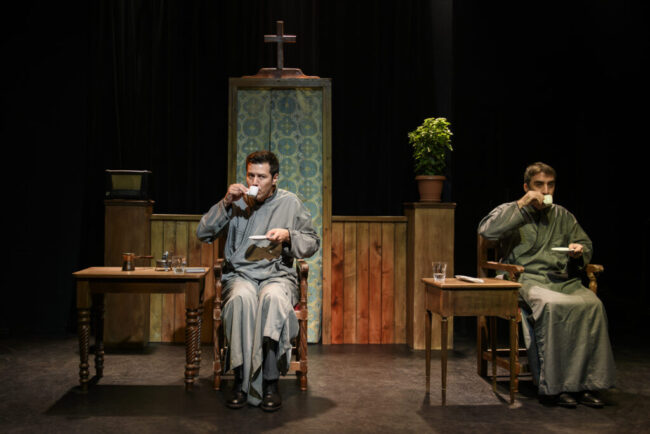 Στην παράσταση, η δραματουργική πολυπλοκότητα του έργου φωτίζεται ακόμη περισσότερο από το σκηνικό εύρημα να ενσαρκώνεται ο Κωνσταντής από δύο ηθοποιούς. Η διπλή αυτή παρουσία δεν λειτουργεί μόνο ως αισθητική επιλογή, αλλά ως κλειδί ανάγνωσης της ίδιας της ψυχολογίας του ήρωα. Ο Κωνσταντής δεν αντιμετωπίζεται ως ενιαία, αδιαπραγμάτευτη ταυτότητα, αλλά ως ένα πρόσωπο που διαρκώς μεταβάλλεται, σκίζεται, επανασυστήνεται μέσα από τις μνήμες του, από την επικοινωνία με τους σημαντικούς ανθρώπους της ζωής του, τα τραύματά του και τις κοινωνικές πιέσεις που τον περιβάλλουν. Σκηνικά, το γεγονός ότι δύο ηθοποιοί ενσαρκώνουν το ίδιο πρόσωπο δίνει μορφή σε αυτή την αντίφαση. Ο θεατής παρακολουθεί έναν άνθρωπο που μοιάζει πάντα «δίπλα» στον εαυτό του. Μια ύπαρξη που παλεύει ανάμεσα στην ανάγκη για ορατότητα και στην ανάγκη για απόκρυψη, ανάμεσα στην επιθυμία για αποδοχή και στον φόβο της τιμωρίας.