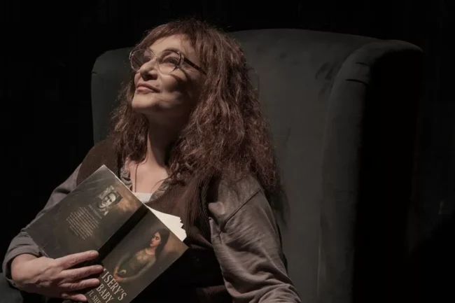 Η μετάβαση της Κομνηνού από την ηρεμία στην έκρηξη και από την τρυφερότητα στον σαδισμό είναι σταδιακή, σχεδόν υπνωτιστική. Η ηθοποιός δουλεύει σε λεπτομέρειες: στο βλέμμα που παγώνει σε μια στιγμή παραλογισμού, στη φωνή που αλλάζει χροιά όταν μιλά για το «αγαπημένο της έργο», στα ξαφνικά ξεσπάσματα που μοιάζουν περισσότερο με κραυγές ενός πληγωμένου παιδιού παρά με επιθέσεις ενός κακού χαρακτήρα. Η Κομνηνού μετακινείται ανάμεσα σε αυτά τα δύο συναισθηματικά άκρα με τέτοια υπόγεια αρμονία, ώστε, καθώς η παράσταση εξελίσσεται, κάθε της λέξη φορτίζεται με μια σιωπηλή, ανατριχιαστική απειλή.