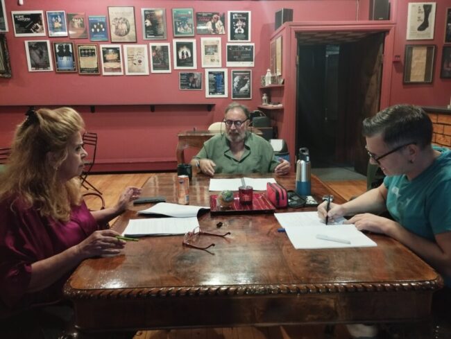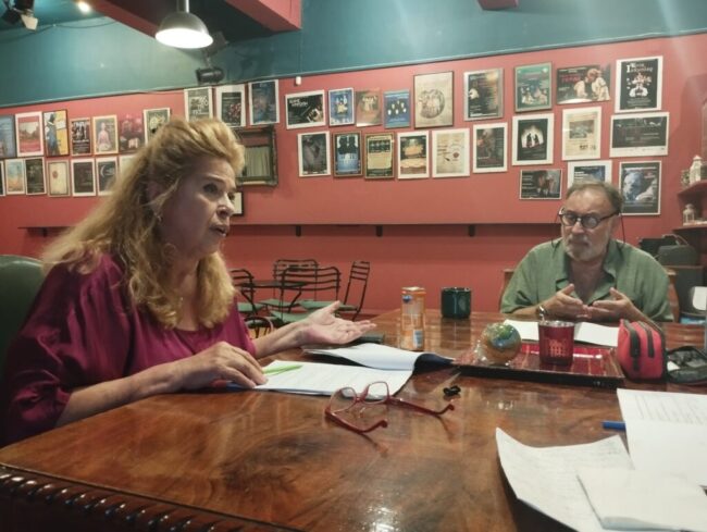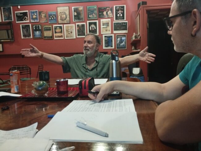 Κ.Δ. Συνεργαστήκαμε εξαιρετικά! Και αποφασίσαμε τον δύσκολο δρόμο. Και ερμηνεύω τον ρόλο -συγκεκριμένα ο Στέλιος καλείται να ερμηνεύσει 13 ρόλους!- και απευθύνομαι στο κοινό, είτε άμεσα όπως κάποιες στιγμές το κάνει η Τζούλια που ερμηνεύει η Ιωάννα Γκαβάκου, είτε έμμεσα κάνοντας το κοινό συμμέτοχο στη δράση της παράστασης.